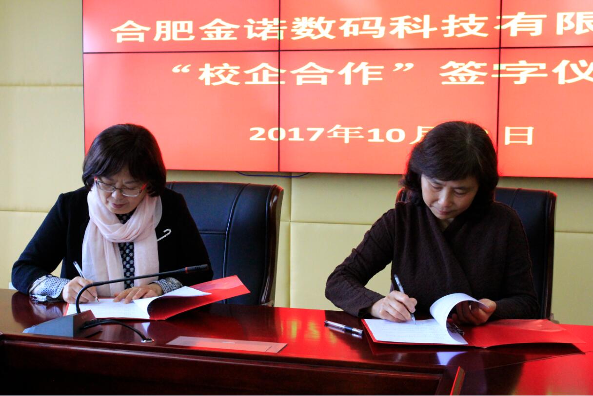 為公司未來(lái)發(fā)展儲(chǔ)備人才和選拔人才,公司積極響應(yīng)國(guó)家關(guān)于加強(qiáng)企業(yè)和學(xué)院合作的號(hào)召,2017年10月13日下午,公司與安徽職業(yè)技術(shù)學(xué)院共建“金諾”班簽字儀式在安徽職業(yè)技術(shù)學(xué)院學(xué)院行政樓十樓會(huì)議室舉行。公司董事長(zhǎng)田地、副總經(jīng)理戴平與安徽職業(yè)技術(shù)學(xué)院副校長(zhǎng)史鋒共同出席了簽約儀式,安職院藝術(shù)設(shè)計(jì)學(xué)院呂慧副院長(zhǎng)主持簽約儀式。