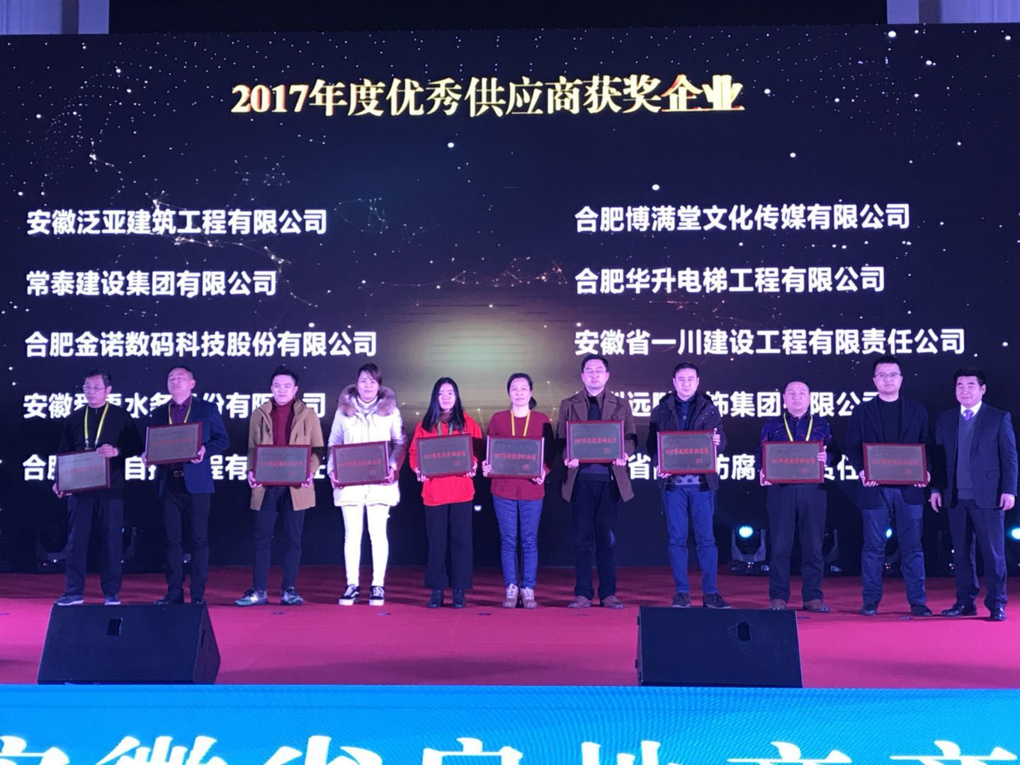 在2018年1月25日召開的安徽省房地產(chǎn)商會(huì)2017年會(huì)上,我公司憑借雄厚的技術(shù)實(shí)力、優(yōu)質(zhì)的產(chǎn)品及完善的服務(wù)榮獲“2017年度優(yōu)秀供應(yīng)商”稱號。此次榮譽(yù)的獲得標(biāo)志著金諾品牌再次受到建筑規(guī)劃展示領(lǐng)域客戶的肯定,也對將來提出了更高的要求。金諾科技將繼續(xù)秉承精進(jìn)的態(tài)度、專業(yè)水準(zhǔn)一如既往地做好研發(fā)、生產(chǎn)制作及營銷工作,不斷為建筑規(guī)劃展示、科技展覽、數(shù)字科普、工業(yè)展示、軍事模擬等領(lǐng)域提供最佳解決方案與服務(wù)。
