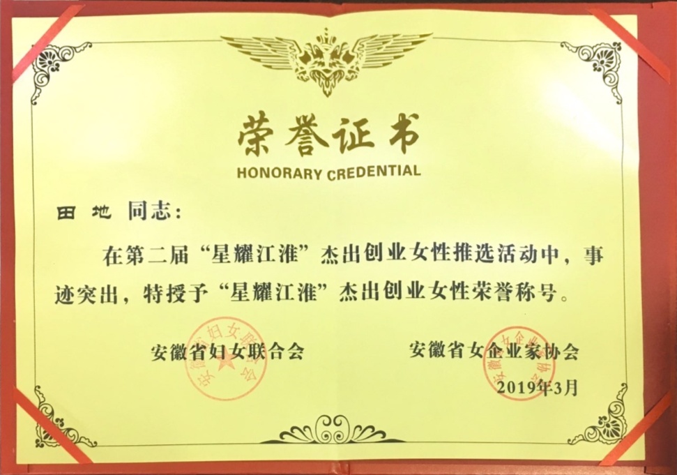 熱烈祝賀田地女士獲得“星耀江淮”杰出創(chuàng)業(yè)女性榮譽(yù)稱號