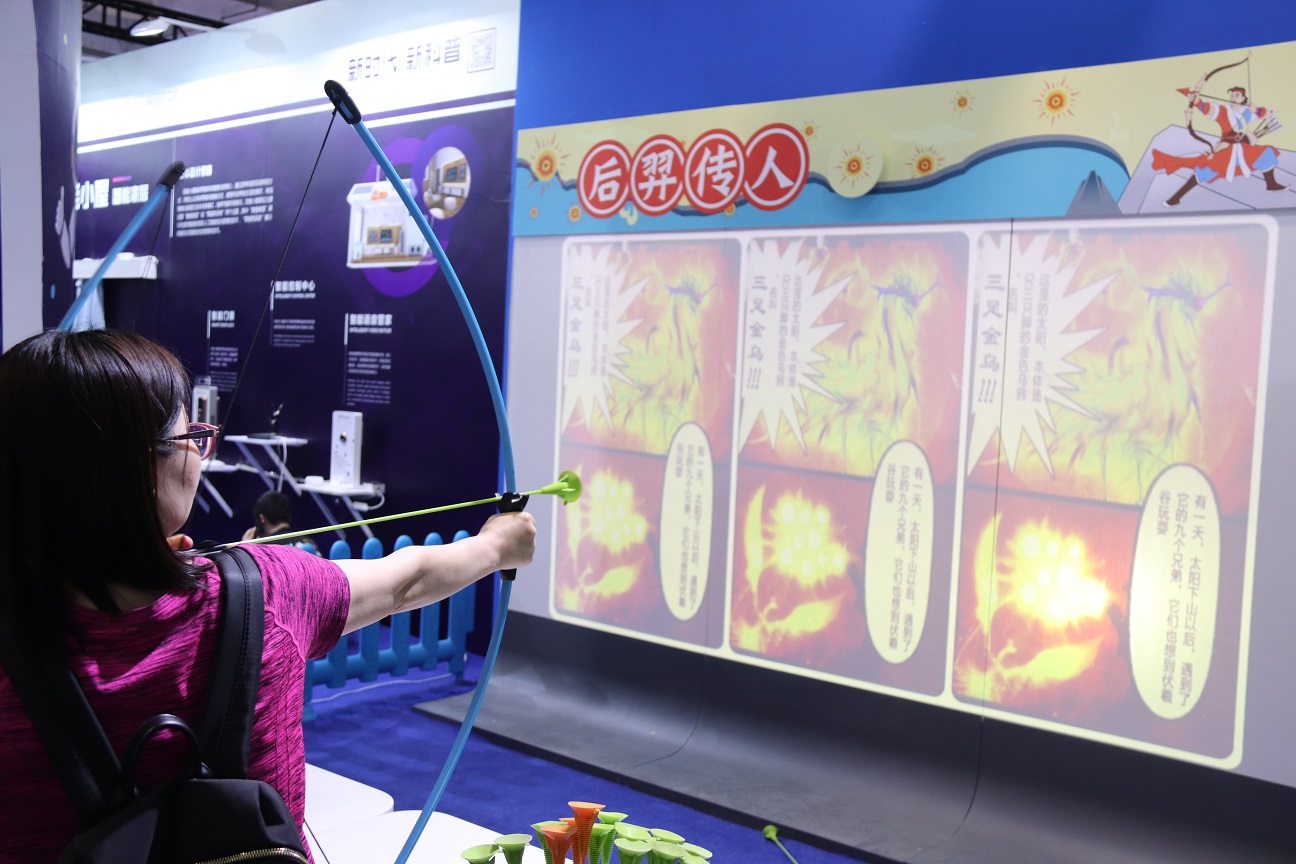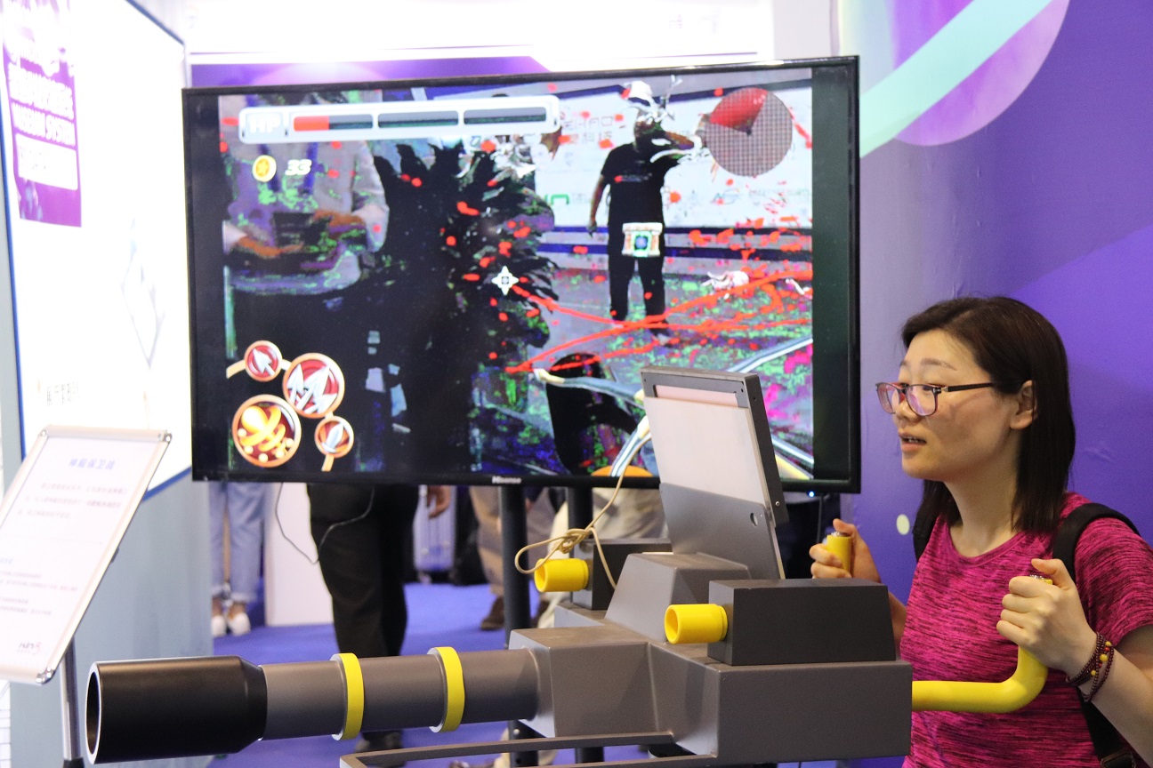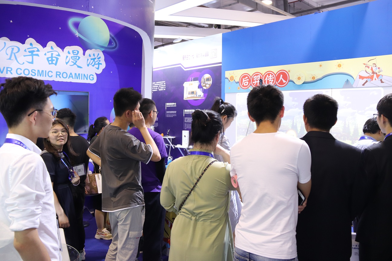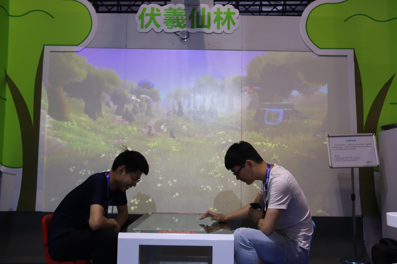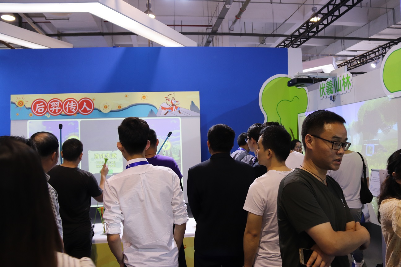 此次參展,金諾科技共展出化蝶漫游、后羿傳人、VR宇宙漫游、神殿保衛(wèi)戰(zhàn)以及伏羲仙林共五件展品。 在此次金諾科技的參展現(xiàn)場,你既可以選擇拿起弓箭保衛(wèi)家園,也可以乘坐宇宙飛船進(jìn)入太空看看浩瀚的宇宙景象,可以發(fā)揮想象力創(chuàng)造出你喜歡的動物顏色,讓他們出現(xiàn)在伏羲仙林中,同時你也可以化身蝴蝶翩翩起舞在仙林秘境之中。展品一經(jīng)展出,就吸引了眾多參觀者前來體驗,體驗者絡(luò)繹不絕,展位現(xiàn)場也一度成為科博會上人流最聚集的展位之一。
