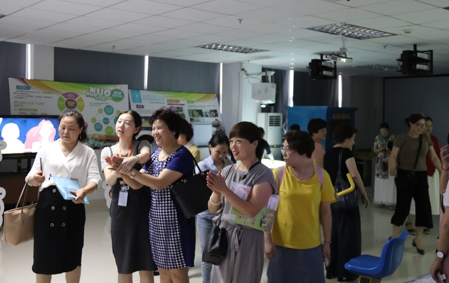6月5日下午4時,安徽省女企業(yè)家協(xié)會秘書長孫春一行60余人抵達金諾科技參觀考察,公司副總經(jīng)理戴平、“四季童耕”探索館館長余金燕親自接待并陪同參觀。戴總及余總對于省女企協(xié)一行的到來表示熱烈歡迎,并在公司會議室為女企協(xié)一行介紹了公司業(yè)務(wù)領(lǐng)域、發(fā)展狀況及公司2017年投資建成的國內(nèi)首個VR探索體驗式兒童育樂平臺—“四季童耕”探索館的投資運營模式。