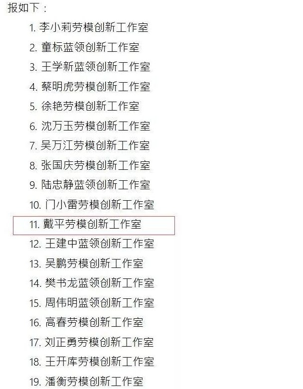 我公司申報的“戴平勞模創(chuàng)新工作室”標準化建設項目