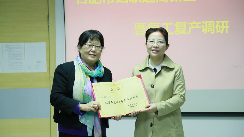 因考慮我市正處于防疫抗疫關(guān)鍵時(shí)期,合肥市婦聯(lián)決定對(duì)2019年安徽省“三八紅旗手”獲獎(jiǎng)?wù)卟扇 八酮?jiǎng)到基層”的頒獎(jiǎng)方式 ,金諾科技董事長田地在2019年安徽省三八紅旗手評(píng)選中榮獲 “安徽省三八紅旗手”榮譽(yù)稱號(hào),由合肥市婦聯(lián)主席宣麗玲為田地董事長頒獎(jiǎng),宣主席對(duì)田地女士在文化創(chuàng)意產(chǎn)業(yè)領(lǐng)域做出的突出貢獻(xiàn)表示肯定。 在隨后召開的企業(yè)復(fù)工復(fù)產(chǎn)情況調(diào)研會(huì)上,董事長田地向宣主席一行詳細(xì)闡述了金諾科技疫情期間公司業(yè)務(wù)受到的影響。疫情期間,金諾科技秉持“不裁員,不減薪”的原則,多舉措并舉,積極調(diào)整公司經(jīng)營策略、創(chuàng)新經(jīng)營方式,整合現(xiàn)有力量來應(yīng)對(duì)疫情給企業(yè)造成的沖擊,宣主席在聽取田地董事長匯報(bào)后表示企業(yè)要堅(jiān)定信心、渡過難關(guān),并在調(diào)研會(huì)上對(duì)金諾科技未來發(fā)展方向提出建議,宣主席的建議也更加堅(jiān)定了公司疫情后戰(zhàn)勝困難的決心,同時(shí)更加明確了疫情之后公司的發(fā)展方向。