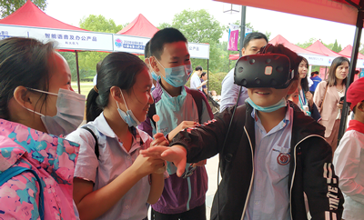 科普活動日現(xiàn)場,安徽省委常委、常務(wù)副省長鄧向陽,省政協(xié)副主席、省科協(xié)主席韓軍蒞臨金諾科技展位。其中《穿越人體防線》展品受到鄧向陽副省長高度贊揚,說我們運用VR技術(shù)讓小朋友們在游戲中學(xué)習(xí)科普知識,現(xiàn)在很需要這樣的技術(shù)。