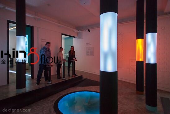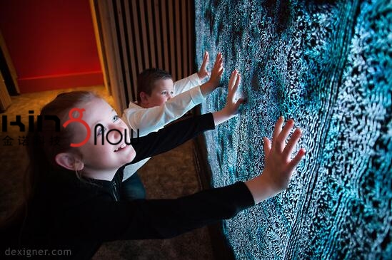 伴隨游客施加的壓力,墻面會由內(nèi)而外發(fā)出相應(yīng)面積的光亮——壓力越大,光亮面積越大。