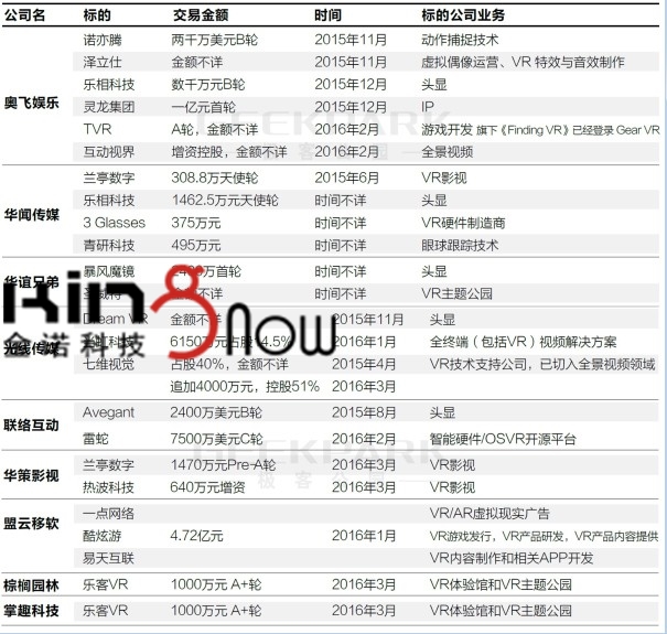 除了上述公司,還有不少上市公司在VR領(lǐng)域做了零散的布局,以下是上市公司VR布局一覽: