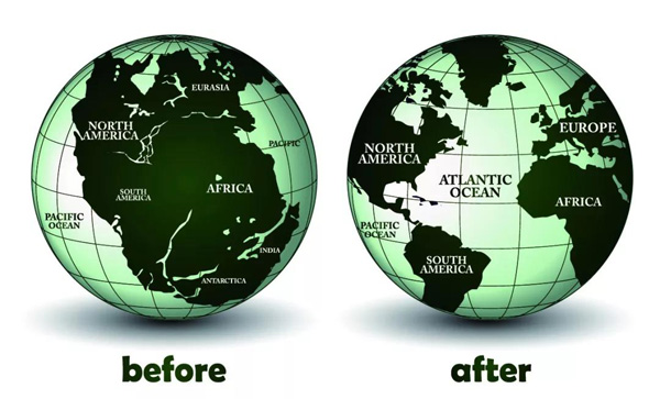大約3億年前,地球上幾乎所有土地都是一個整體。在侏羅紀(jì)時期,泛古陸分裂成兩個大陸,隨著時間的推移,它們分裂推移成現(xiàn)在的樣子。